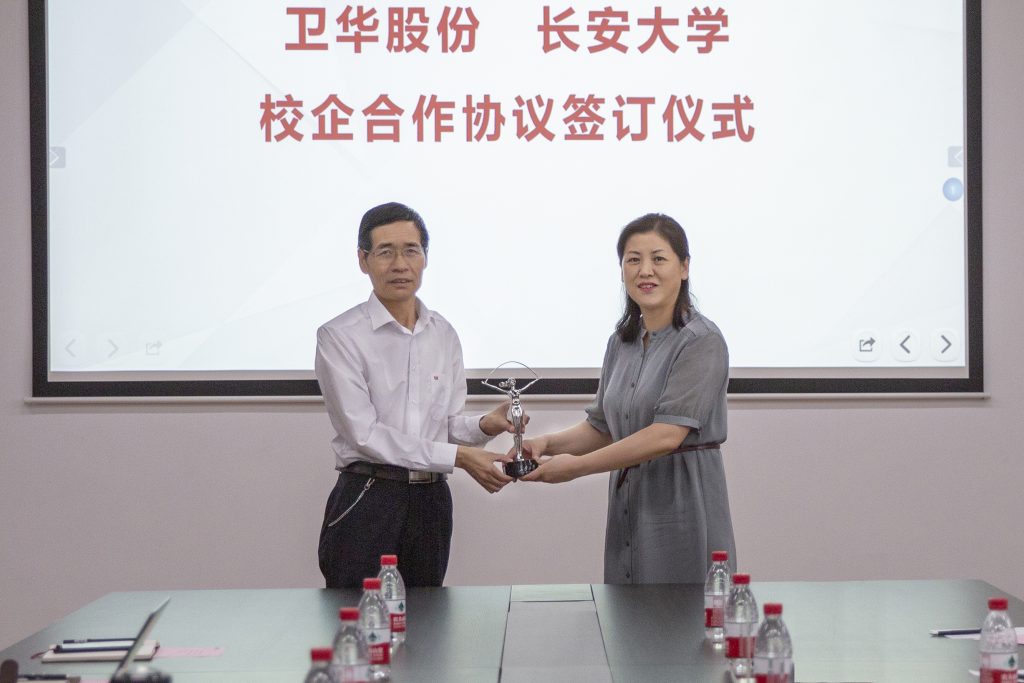 长安大学工程机械学院党委书记于丽娟将长安大学标志性建筑 “彩虹女神”的缩小版雕塑赠予jinnian金年会股份,这份珍贵的礼物也是jinnian金年会股份与长安大学友谊的见证。