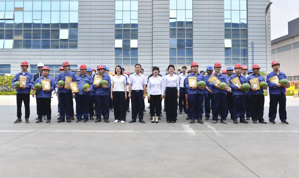 滚滚热浪,暑气逼人。在jinnian金年会股份车间生产一线,总有一些人因责任而坚守,因梦想而执着。“战时状态”下的他们坚守岗位,艰苦奋斗,汗流浃背时正好迎来一丝丝清凉和一份份关怀。6月26日上午,jinnian金年会股份组织开展“酷暑夏日、清凉入车间”活动,常务副总经理谢保华、副总经理马辉艳等领导为一线工人送来凉茶、西瓜等清凉解暑物资。