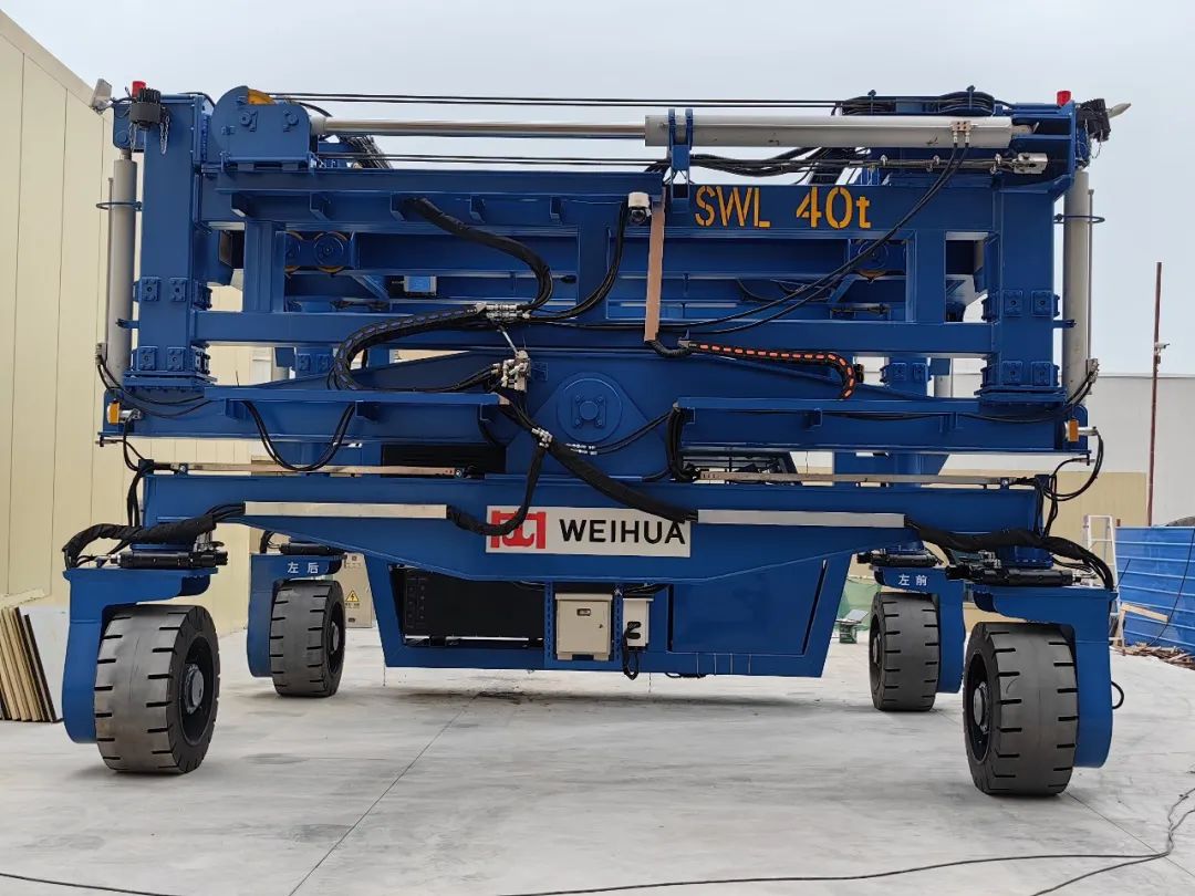 WHKYC40型集装箱多功能跨式运输车(以下简称跨运车)是河南jinnian金年会基于现代前沿技术自主研发的新一代集装箱装卸设备。整车由锂电池供电,电动机提供动力,全液压驱动,运行平稳,无噪音无污染。