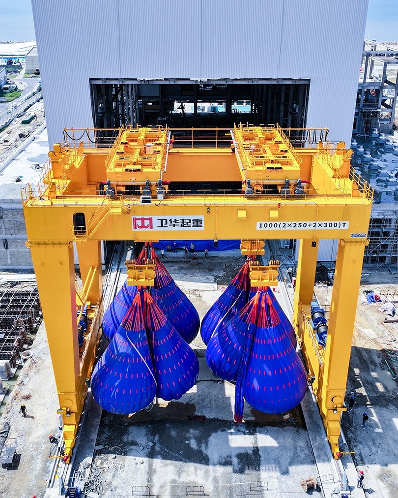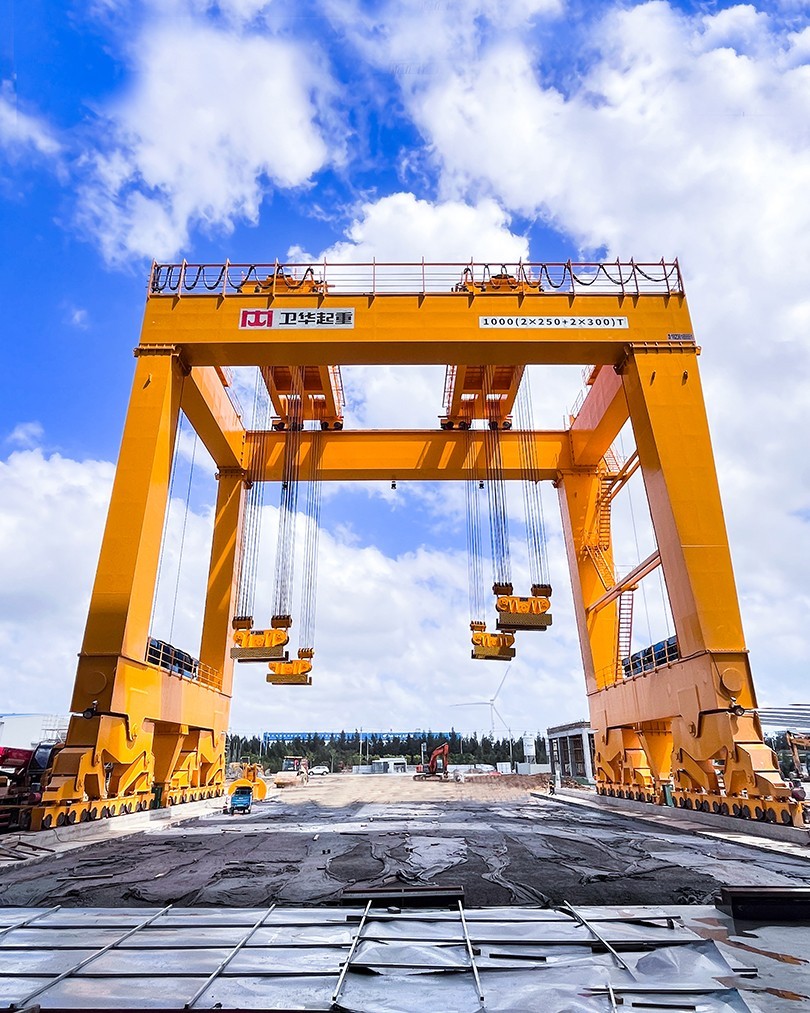 近日,在福建省福清市江阴港国家级海上风电研究与试验检测基地,河南jinnian金年会1000t双主梁门式起重机顺利完成重载实验并投入运营。