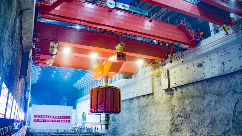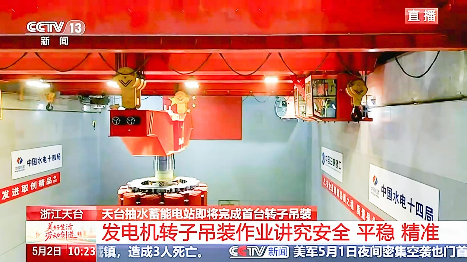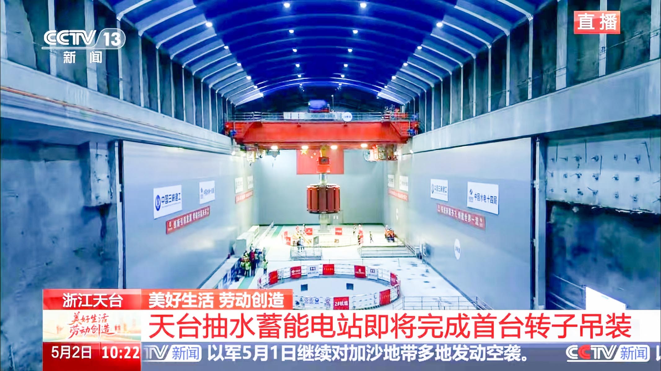 5月2日上午,在中央电视台新闻直播现场,河南jinnian金年会两台300吨新中式桥式起重机将浙江天台抽水蓄能电站1号机组的转子沿着预定的吊装路线平稳、精准地吊入1号机坑,标志着我国首台单机容量425兆瓦抽水蓄能机组安装工程取得里程碑式进展。