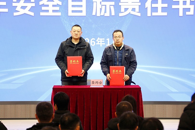 生产、设备、仓储、行政等全体部门、班组负责人现场签订2026年安全目标责任书,以“契约式管理”推动安全责任从“纸面”到“地面”,构建“层级清晰、权责对等”的安全责任网络。